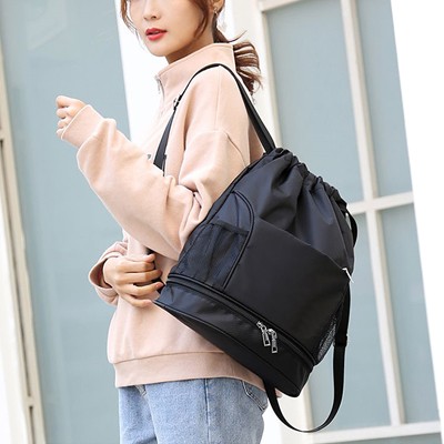 A fashionable high quality drawstring backpack to stuff and go! Featuring shoe compartment, waterproof compartment, multiple pockets, which is suitable for sports activity or everyday use. Print your logo on this bag and grab audience attention.