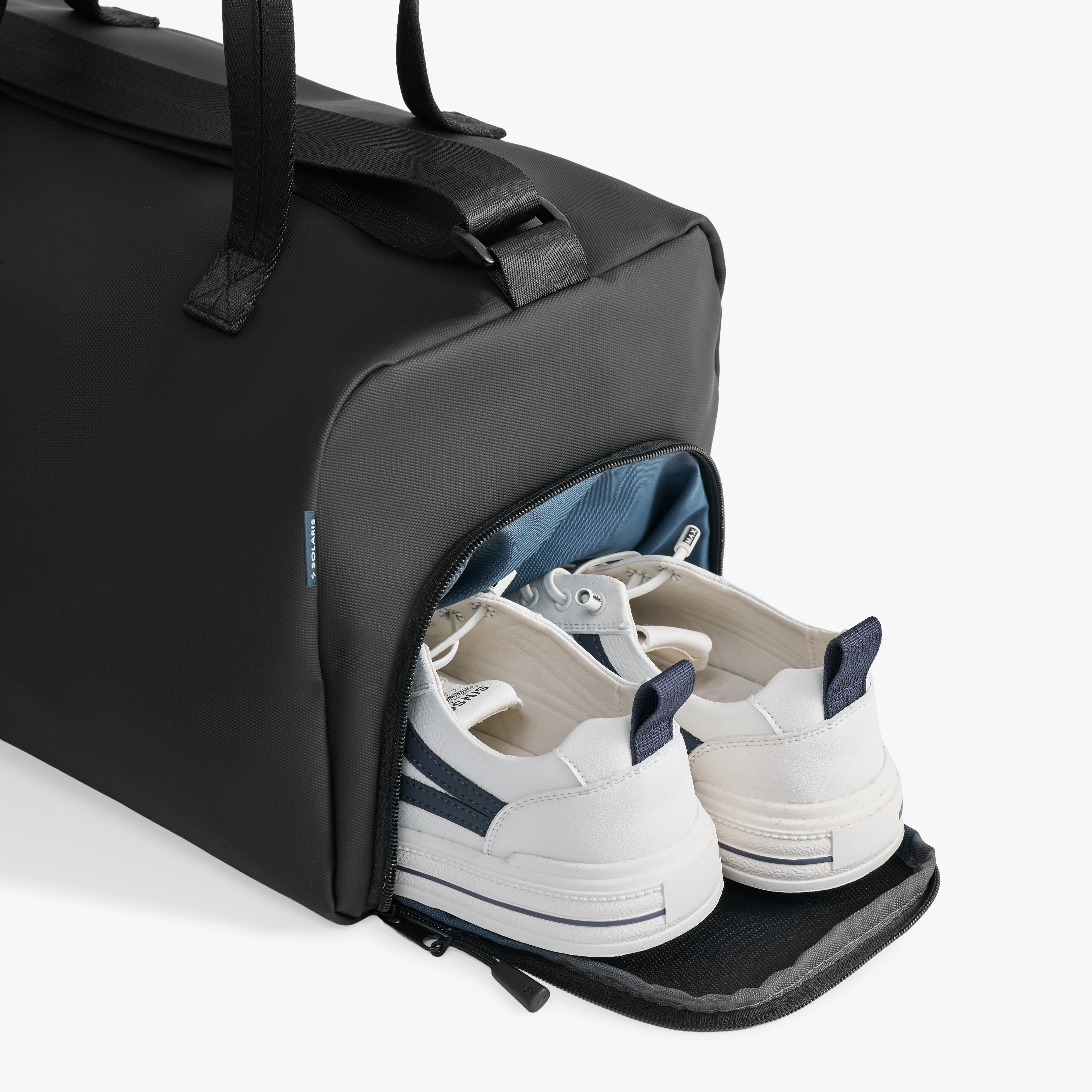 Designed for smart organization, the duffel features a dedicated shoe compartment, three external side pockets for quick access items, and a spacious main compartment to neatly store clothes, gadgets, and daily essentials. The adjustable shoulder strap allows comfortable carrying, whether slung over your shoulder or across your body.