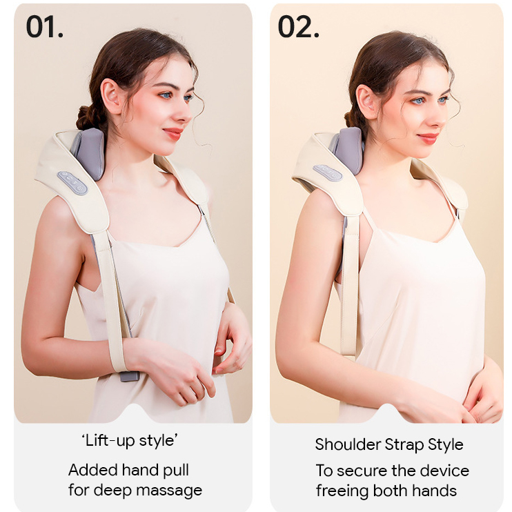 Experience deep relief with this smart neck massager, designed to target cervical and trapezius muscles. Equipped with a 6D chip and powerful motor, it delivers a realistic kneading massage using soft, flexible heads.