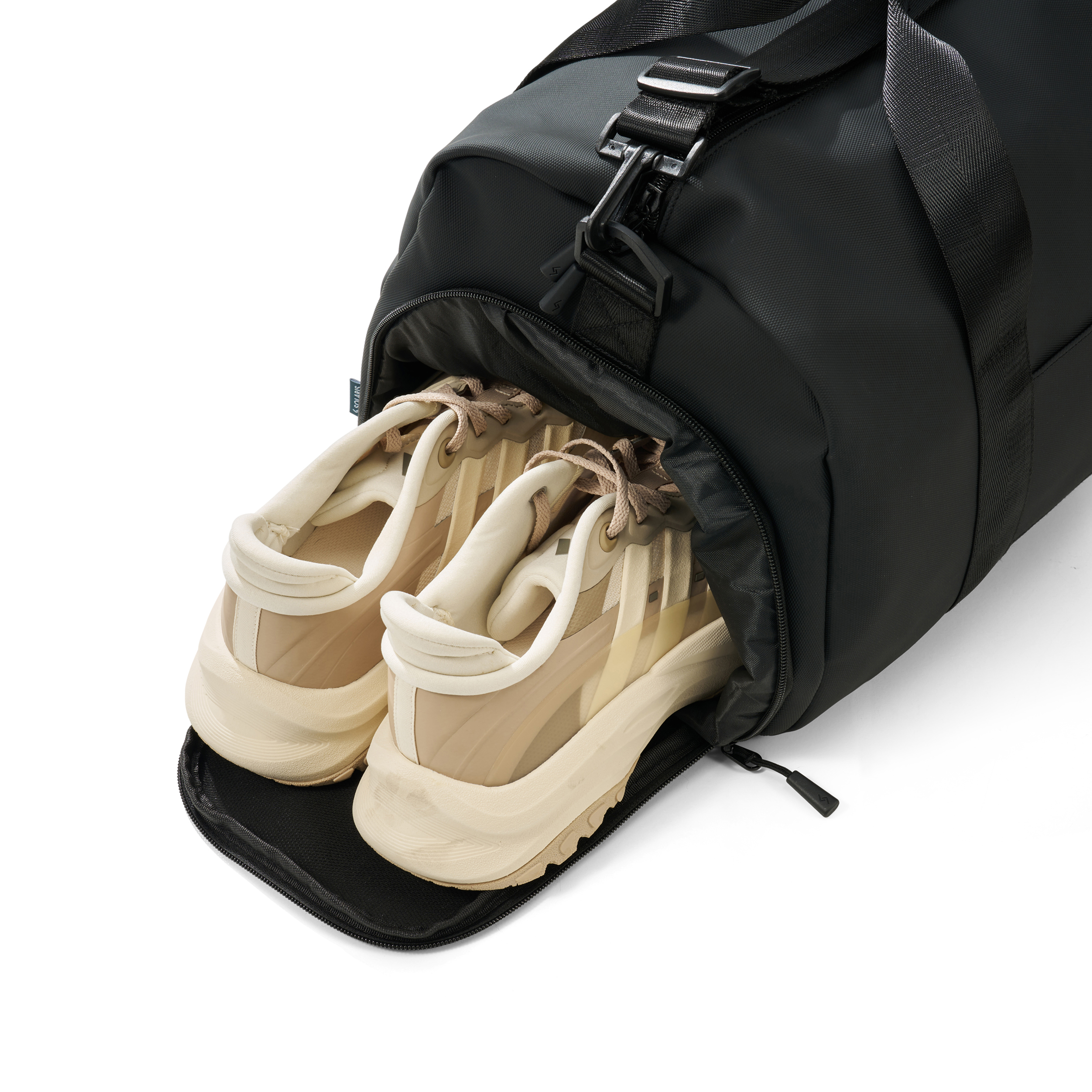 The water-repellent exterior protects your essentials, while the blue inner lining adds a subtle contrast and improves visibility when packing. A dedicated shoe compartment keeps items separated for better organisation.