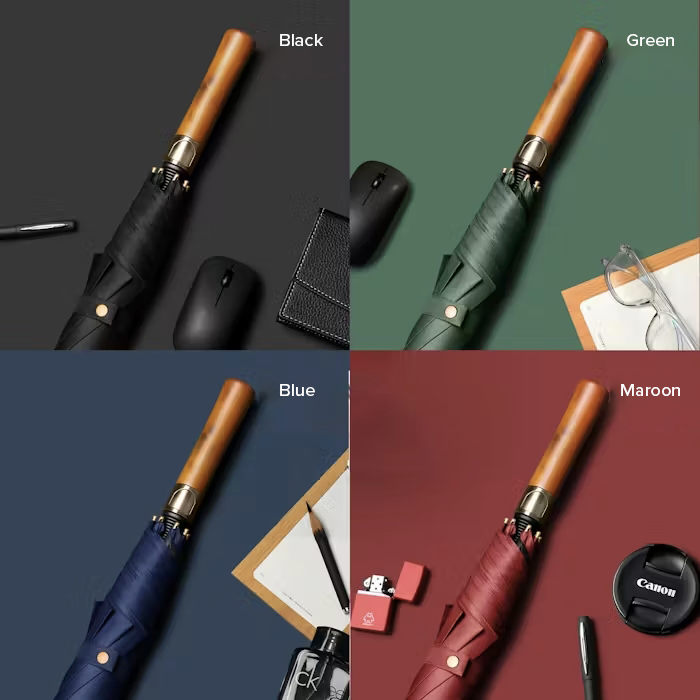 Featuring a sleek straight wooden handle and a durable pongee canopy, it’s designed for both style and strength. The sturdy frame ensures reliable protection from wind and rain.